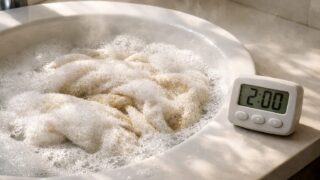 この方法の最大のメリットは、熱の力で繊維の奥に入り込んだ油分(皮脂)を溶かし出し、同時に漂白剤のパワーを最大限に引き出せることです。さらに、熱湯による殺菌効果で、黄ばみだけでなく生乾き臭の原因菌(モラクセラ菌など)も死滅させることができます。