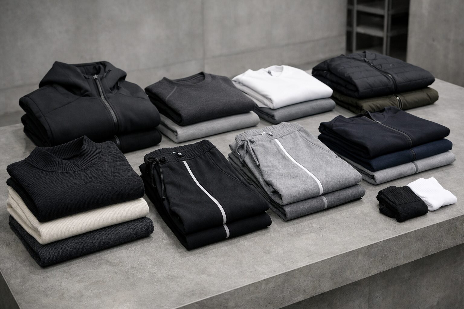 これを回避するには、ブラック、ネイビー、ダークグリーンといった「引き締め色」を選ぶのが正解です。濃い色は高級感があり、スウェット特有のカジュアルさを中和してくれます。さらに、フードがしっかりと立つ肉厚なパーカーや、センタープレスの入ったスウェットパンツなど、デザインにひと工夫あるものを選ぶことで、部屋着ではなく「ファッションアイテム」として認識されます。セットアップで着る場合は、インナーに白Tシャツを挟んで裾からチラ見せする「レイヤード」テクニックを使うと、一気におしゃれ度がアップします。
