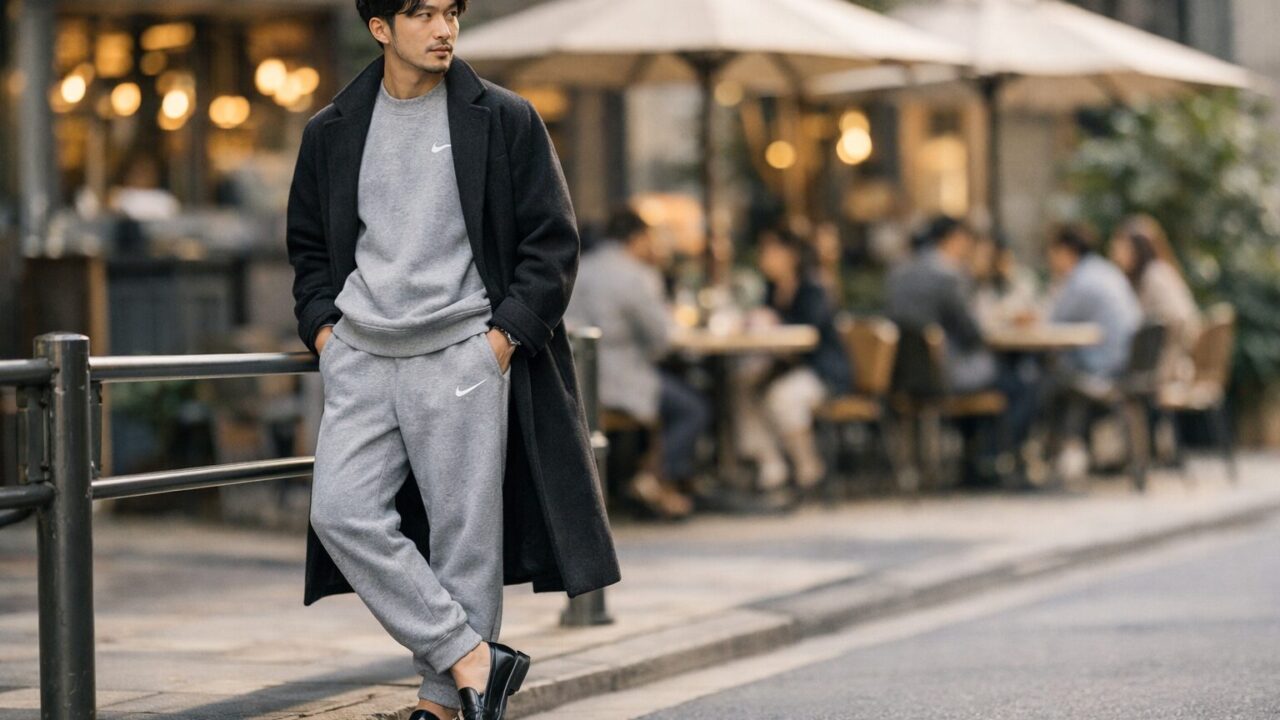 確かに、スポーツウェアは機能性が高い反面、普段着として取り入れるには少しコツがいります。 何も考えずに着てしまうと、「本気で運動しに行く人」や「近所のコンビニに行く格好」に見えてしまいがちです。 しかし、街中を見渡せば、全身ナイキを驚くほどスタイリッシュに着こなしている人がいます。 彼らとあなたの違いは、実はほんの少しの「サイズ選び」と「アイテムの組み合わせ」にあるのです。