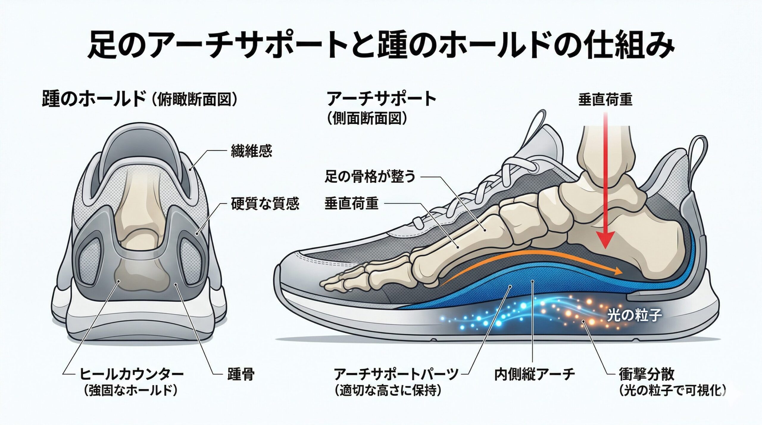 2. 立ち仕事で疲れない靴の特徴は?骨格を支えるアーチサポート