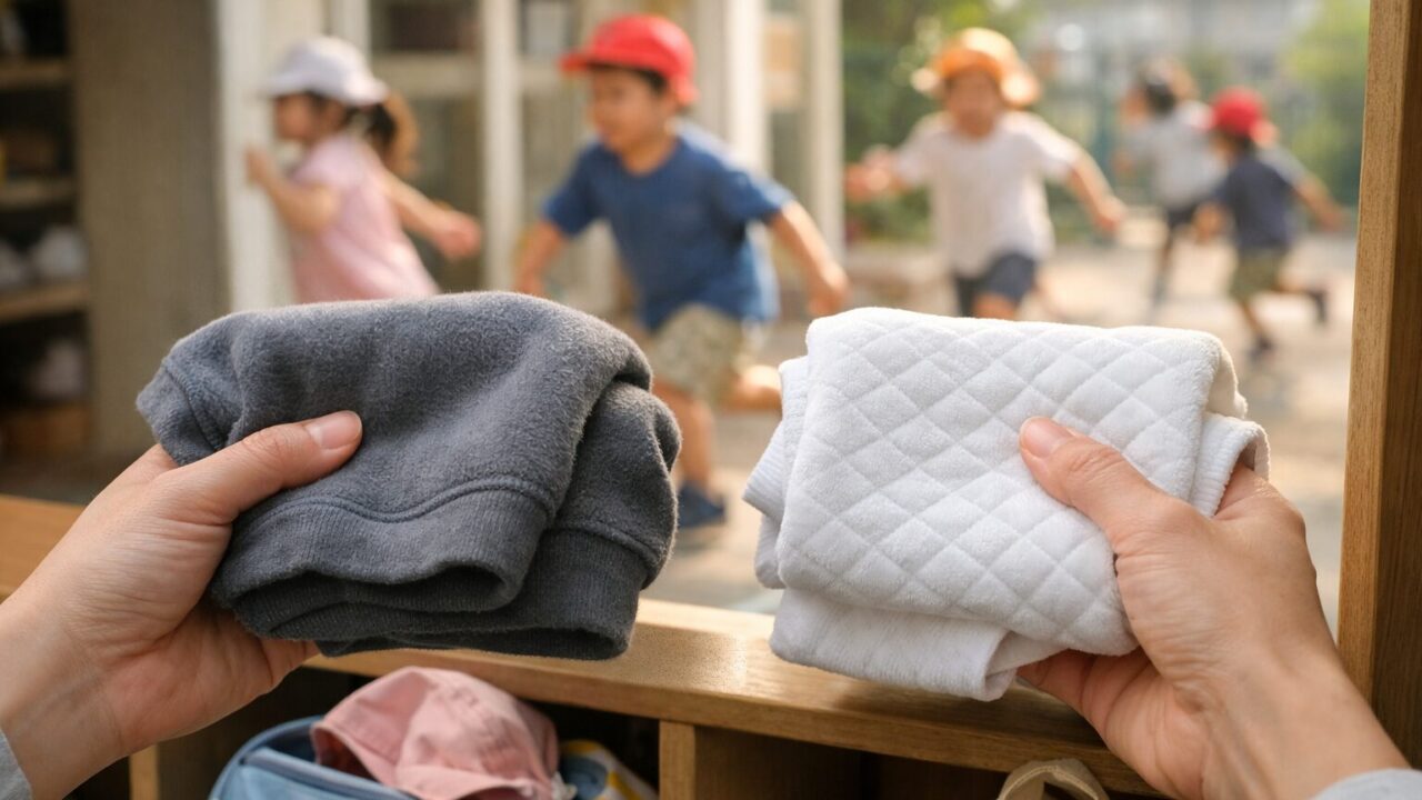 また、裏起毛は熱がこもりやすく、必要以上に体温を上げてしまいます。自分で「暑いから脱ぐ」という判断が難しい乳幼児の場合、熱がこもって脱水症状に近い状態になったり、あせもができたりするリスクもあります。保育士さんたちが裏起毛を避けるよう指導するのは、単なる好みではなく、子供たちが快適に活動し、健康に過ごすためのプロとしての判断なのです。動きやすく、汗を吸い取り、重ね着で調節できる「裏毛(パイル)」や「スムース素材」が推奨されるのはこのためです。