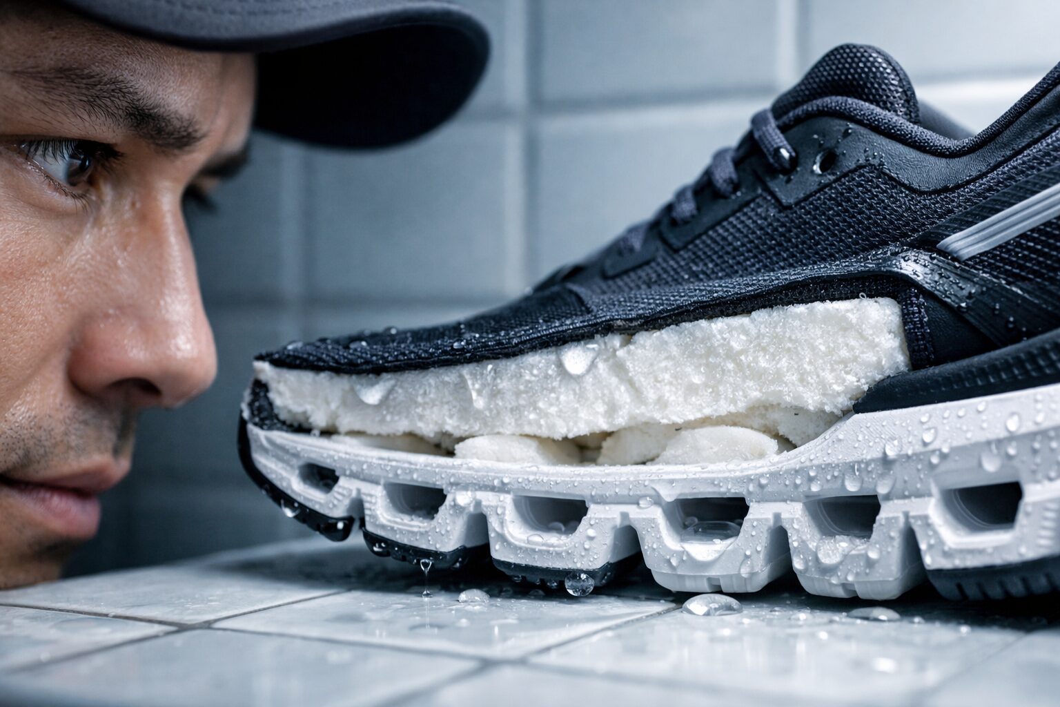 「子供の頃は上履きを毎週水洗いしていたから、スニーカーも同じでしょ?」と思っているなら、その認識は改める必要があります。現代のハイテクランニングシューズ、特にOnのような高機能スニーカーにおいて、水洗いは多くのリスクを伴います。最大の理由は「加水分解」です。スニーカーのソール(特にミッドソール)に使われているポリウレタンなどの素材は、水分と反応して分解が進み、ボロボロに崩れたり、ソールが剥がれたりする性質を持っています。水洗いはこの劣化プロセスを劇的に早めてしまうのです。